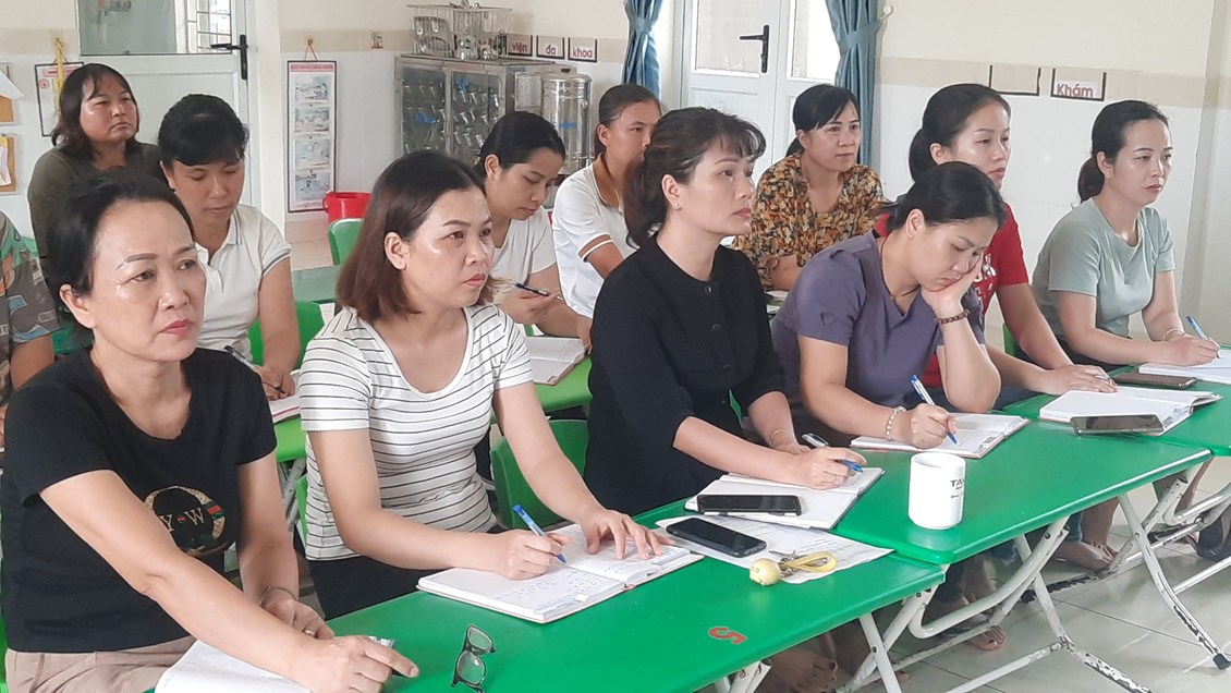 Tại điểm cầu các trường mầm non có sự tham dự của các đồng chí Phó hiệu trưởng và các đồng chí giáo viên nhân viên trong các cơ sở giáo dục.