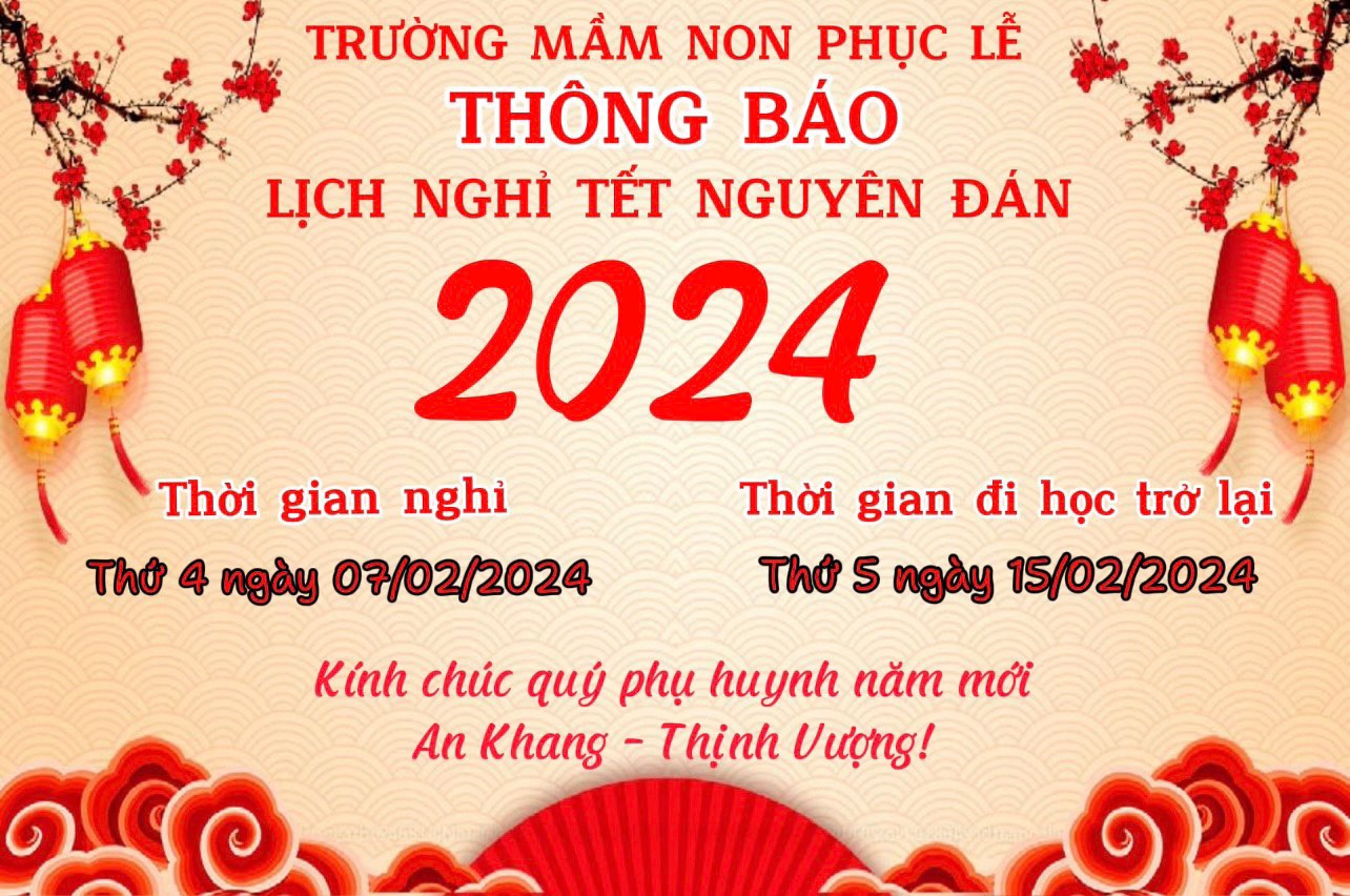 NT thông báo lịch nghỉ tết nguyên đán của cô và bé trường MN Phục Lễ: