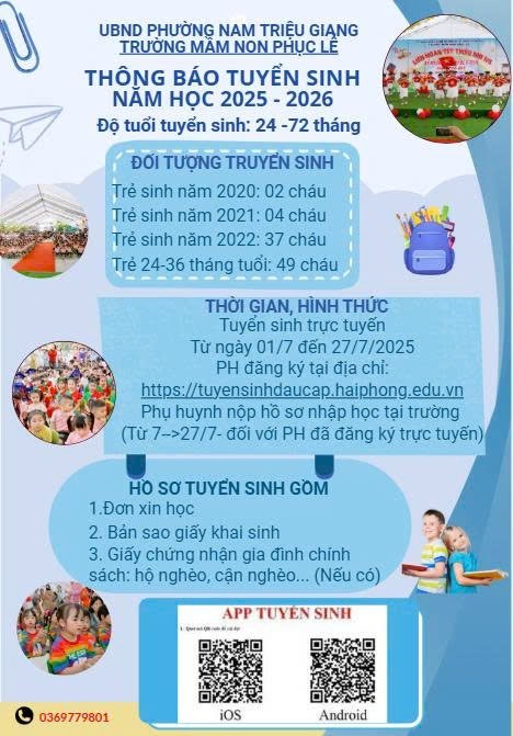 🍀Ngày 1/7/2025 hệ thống chính thức mở cổng cho Phụ huynh có con em trong độ tuổi mầm non đăng ký tuyển sinh. #Trường mầm non Phục Lễ