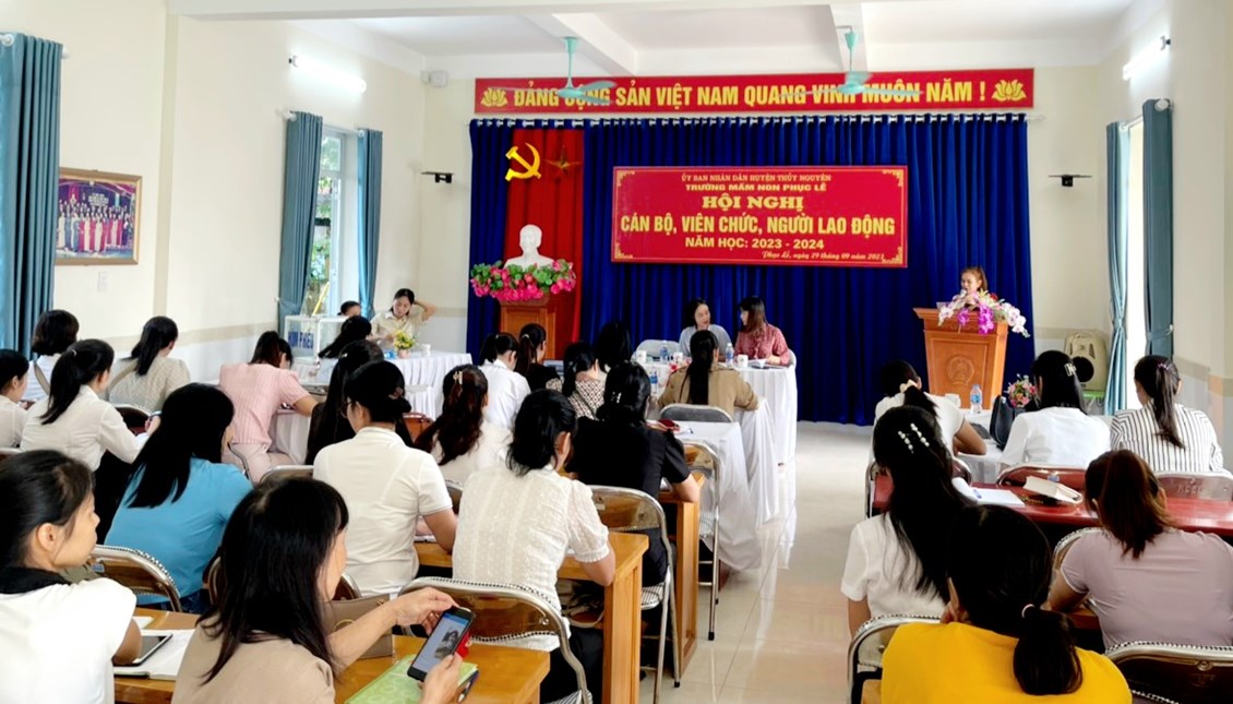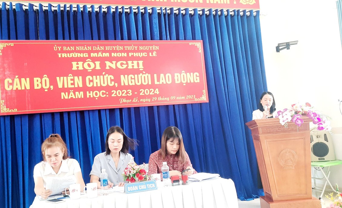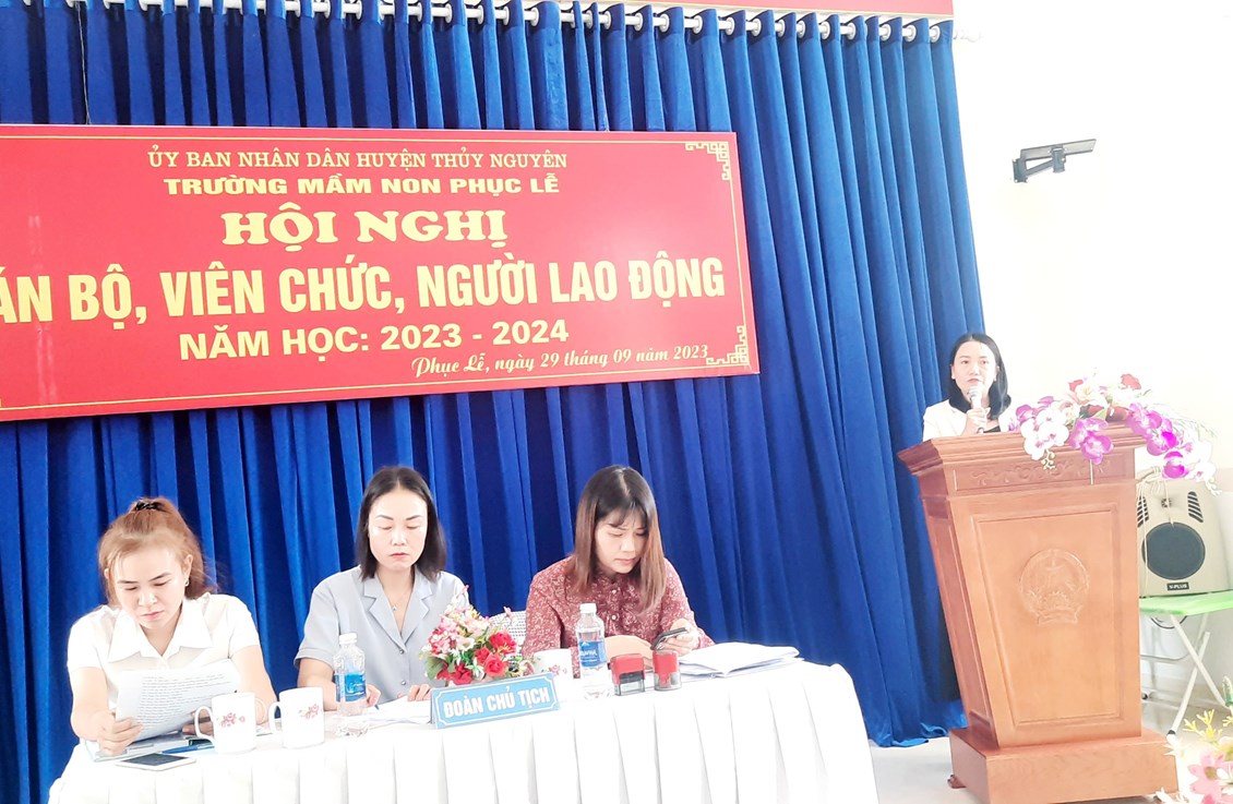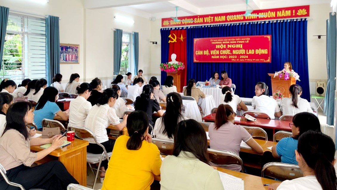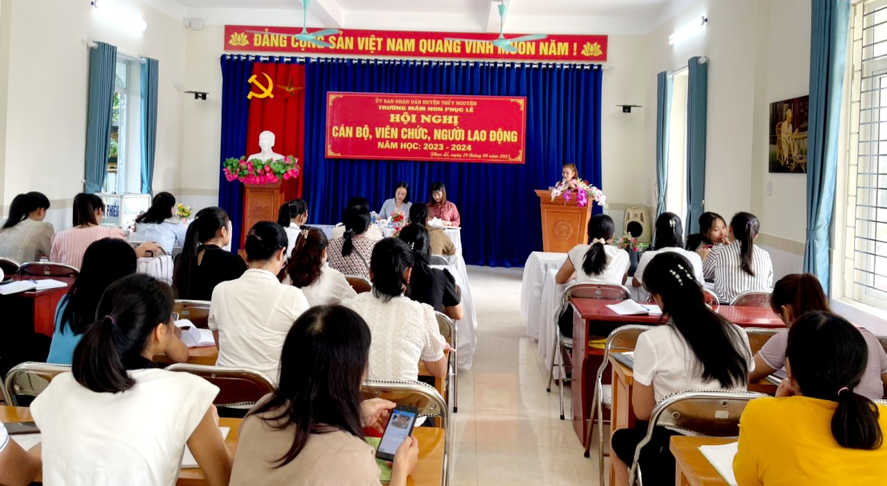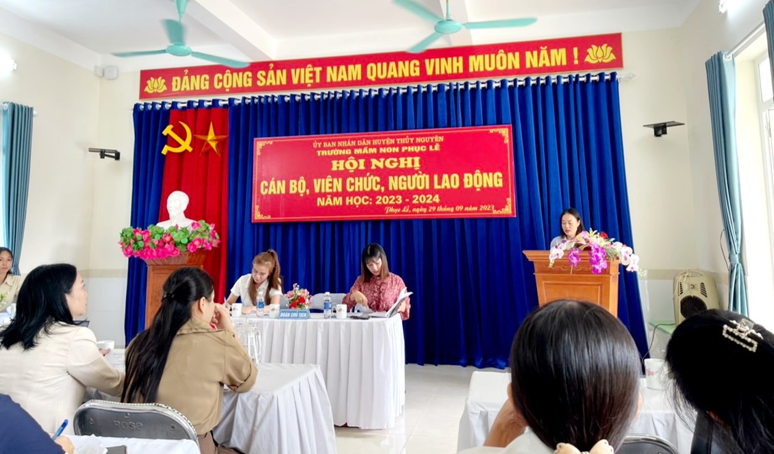 HỘI NGHỊ CÁN BỘ- VIÊN CHỨC- NGƯỜI LAO ĐỘNG NĂM HỌC 2023- 2024 TRƯỜNG MẦM NON PHỤC LỄ
