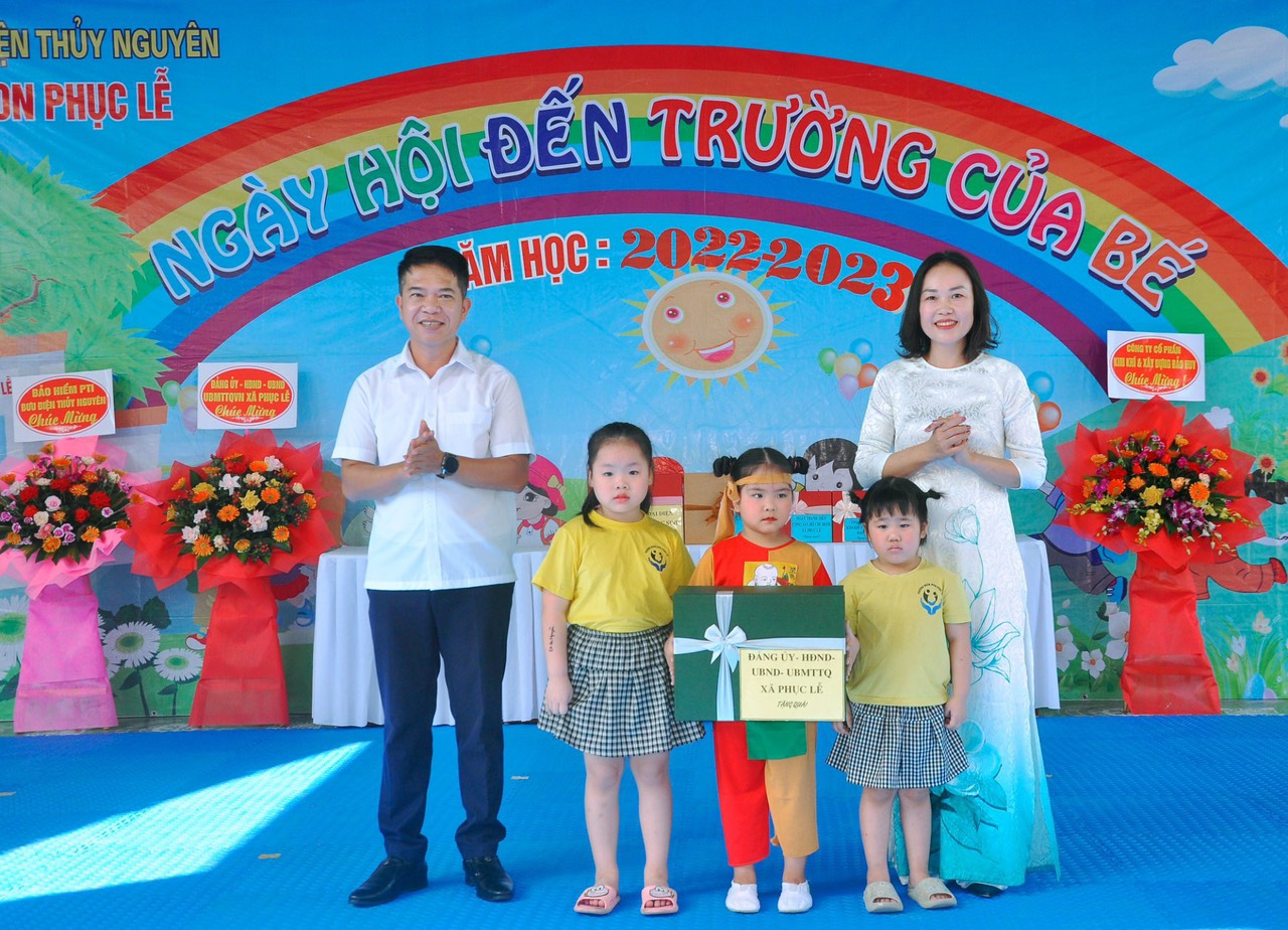 ☘️Đến dự ngày hội của các bé, các cô bác đã có những món quà, những lẵng hoa tươi thắm dành tặng cho cô và trò trường MN Phục Lễ, Tại buổi lễ các ban ngành đoàn thể cũng có những món quà dành tặng cho các bé có hoàn cảnh khó khăn, các bé thuộc hộ nghèo, cận nghèo đang theo học tại trường với mỗi phần quà trị giá 500 nghìn đồng. Các cô, các bé đã biểu diễn những tiết mục đặc sắc để chào đón năm học mới. Trong buổi lễ Cô nguyễn Thị Hà hiệu trưởng nhà trường đã có những lời tâm sự với các bé và chúc các bé luôn mạnh khỏe chăm ngoan học giỏi vâng lời ông bà bố mẹ, thầy cô đồng thời cũng nhắn nhủ đến các cô giáo phối kết hợp với các bậc phụ huynh, các ban ngành đoàn thể để thực hiện xuất sắc nhiệm vụ chăm sóc, nuôi dưỡng giáo dục trẻ.
